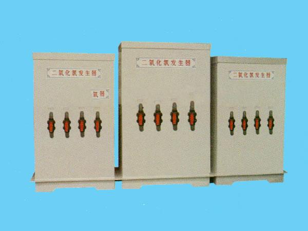 电解法二氧化氯发生器(产氯量50~600g/h) 380V/50Hz,其大功率6.8KW, 操作简单,使用方便,原料为饱和盐液,运行时只需在无盐时定期加盐,可与其它设备、水泵同步运行,不需专业操作人员。可远程控制,具有RS485标准通讯接口。设备结构紧凑,整体性强。