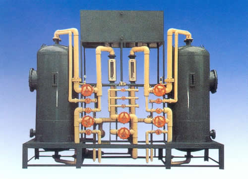 当交换柱的出水硬度0.03mg-N/1硬度时,表明交换柱内树脂已失效,应用食盐溶液进行再生。