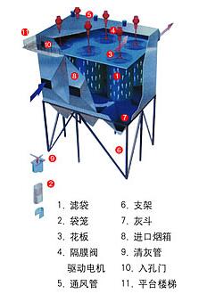袋式除尘器是依靠编织的戈毡织的滤布作为过滤材料来达到分离含尘气体中粉尘的目的。它的工作原理是粉尘通过滤布时产生的筛分,惯性、黏附,扩散和静电等作用而被捕集,其除尘效率可达99%。