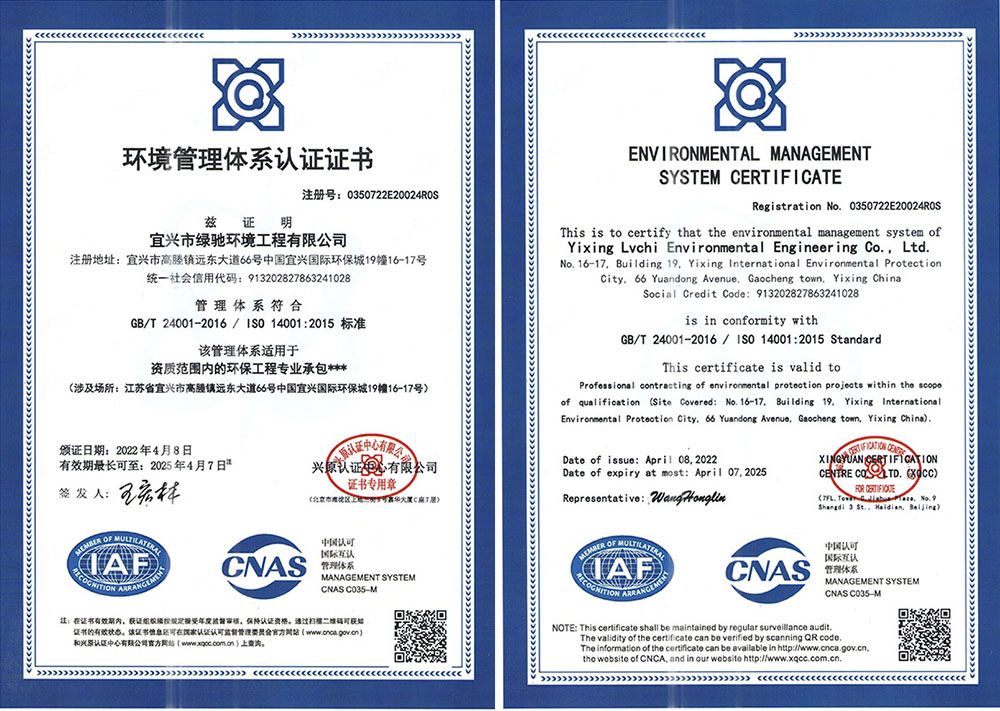 环境管理体系认证证书 中英文